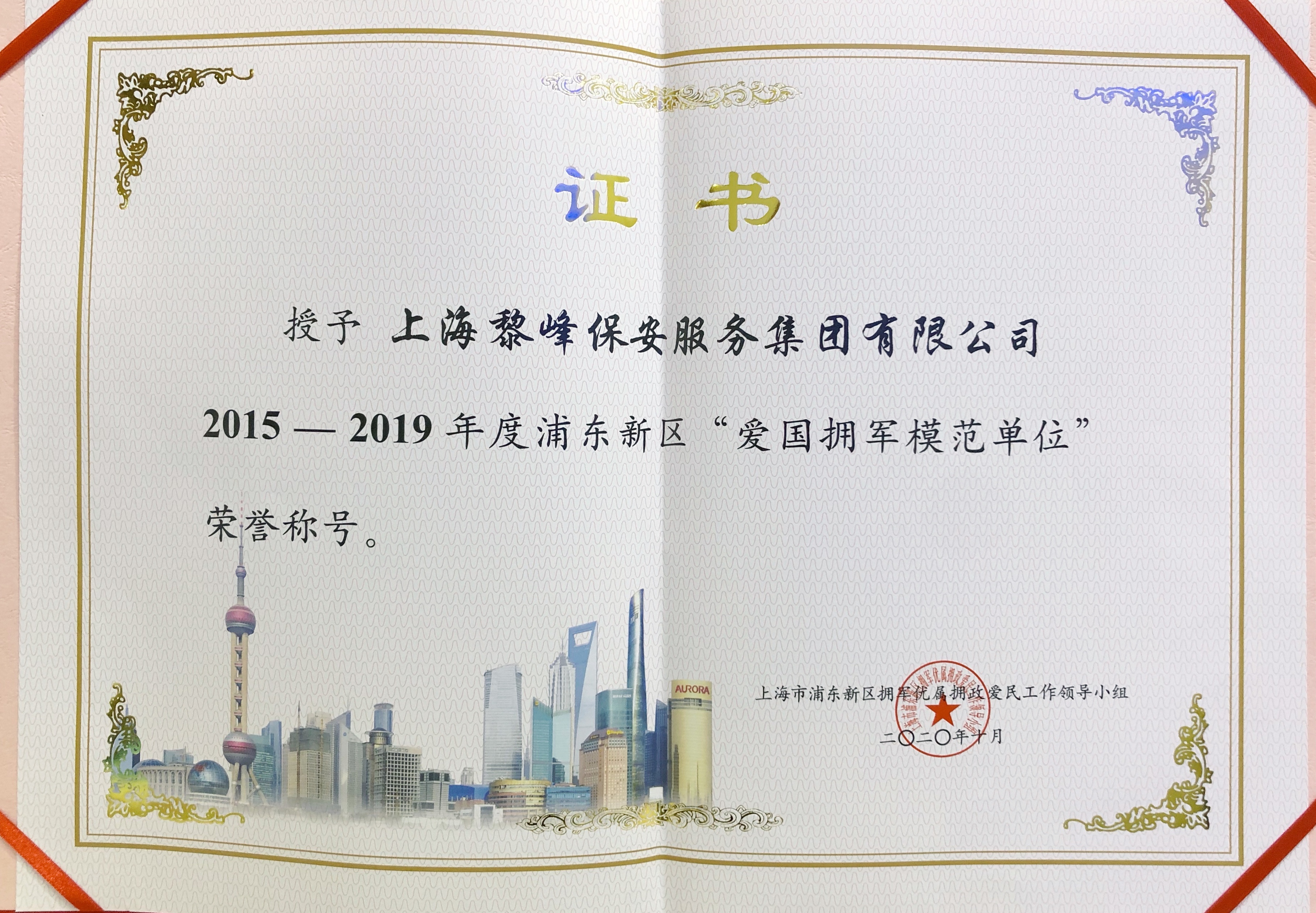 2015年 獲得上海市浦東新區(qū)“文明單位”稱號(hào)的首家保安服務(wù)公司