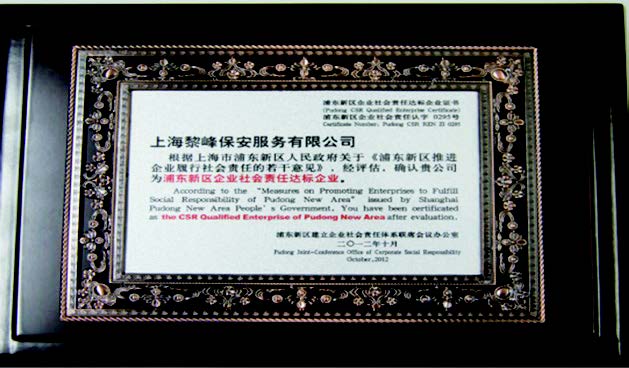 2015年 獲得上海市保安服務(wù)行業(yè)協(xié)會(huì)評(píng)定的保安服務(wù)壹級(jí)資質(zhì)